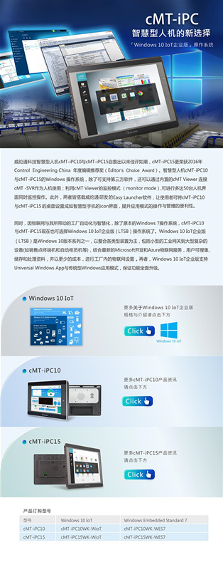 cMT-iPC智慧型人機(jī)的新選擇[Windows 10IOT企業(yè)版]威綸觸摸屏代理
